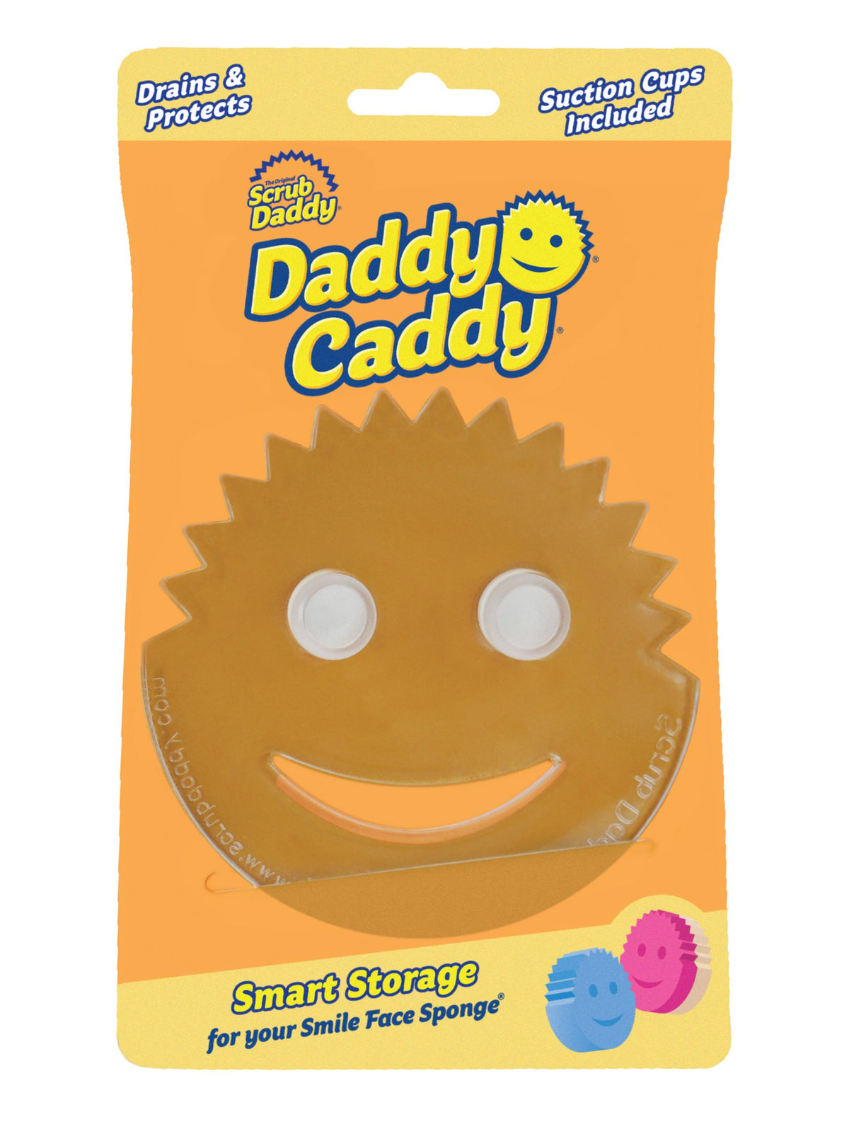 Daddy Caddy is the perfect place to store your favorite sponge between uses. An open design promotes draining and drying without taking up precious counter space. Two suction cups ensure a secure hold to most smooth surfaces. Fits one Scrub Daddy or Scrub Mommy sponge (not included).