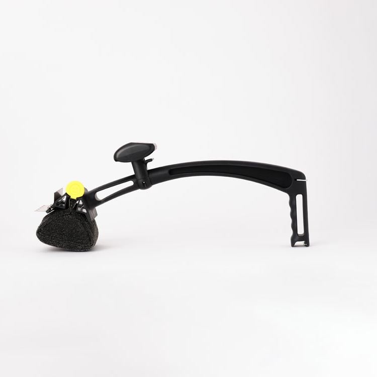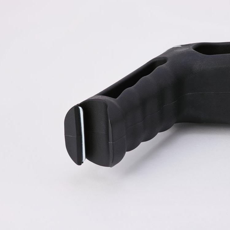 Knob provides leverage. Squeeze trigger to rotate its position when using scraper.